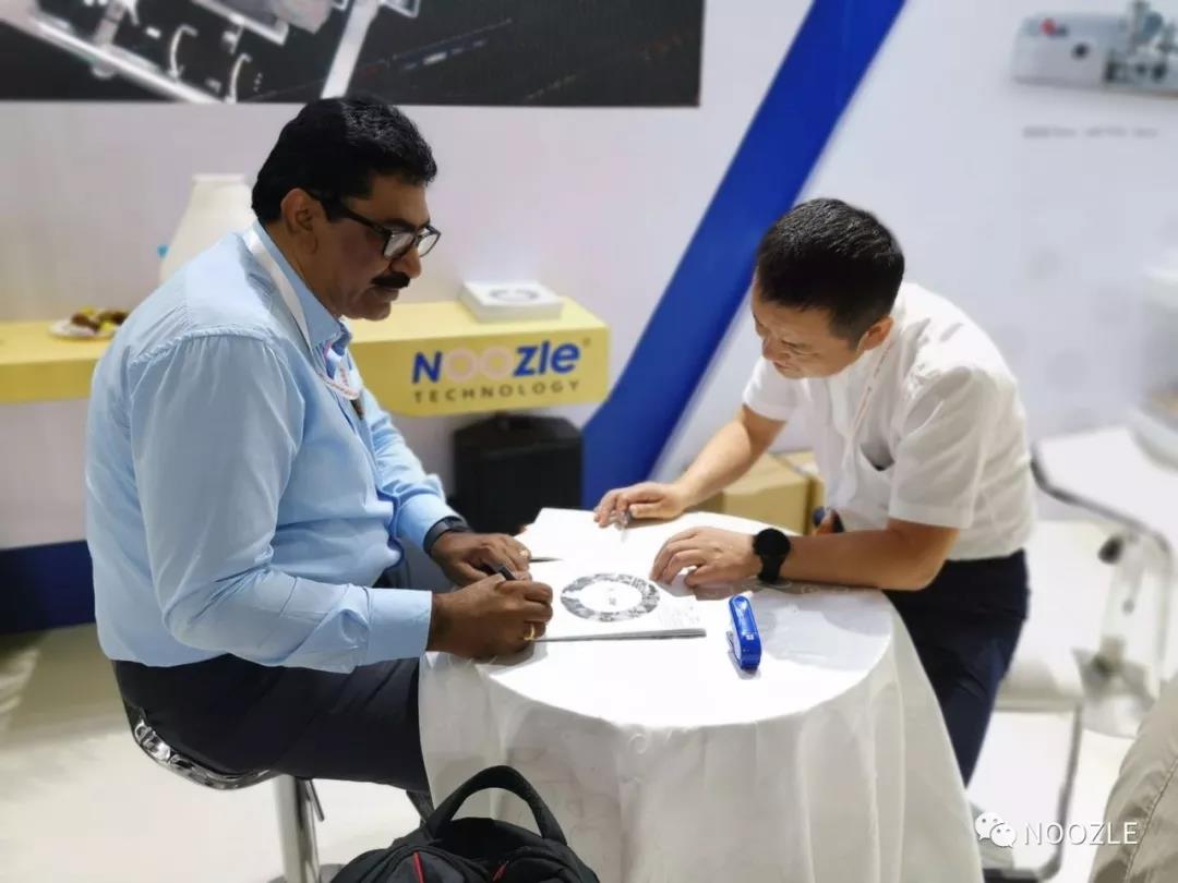 04 国外客户,络绎不络/p> 我司生产的超微粉气流粉碎机、微射流均质机已出口印度,在载药型乳液、脂质体、纳米混悬液的分散等领域得到了国外客户的一致好评,展会期间来自印度、伊朗、印尼等国家的潜在客户络绎不绝来到诺泽展台,我司技术人员现场为客户讲解有关超微粉气流粉碎机、微射流均质机的应用及客户在药物微粉化中遇到的技术问题!更有客户现场确定采购意向、/p>