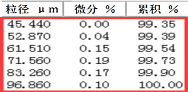 可以看到对于体积含量?%以下的极少量60-100μm的颗粒,以及体积含量?%左右?μm以下颗粒,均能够灵敏的检测出来其详尽的粒度分布。显示了Topsizer Plus对粉体材料的大、小颗粒具有高超的分辨能力,对于下游应用中电池产品的安全性能和容量性能有更准确的指导意义、/p>