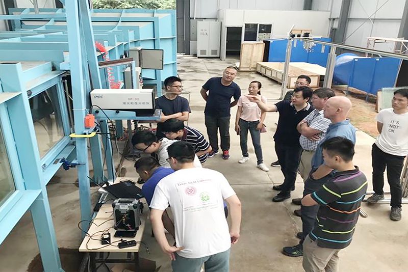 国家精准农业航空施药技术中心向国外专家展示风洞实验室及欧美克DP-02喷雾粒度?/p>