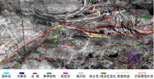 ?3高光谱成像仪测绿色植物的光谱国/p> 4.1.探矿的应?/strong> 光谱遥感技术是由以Landsat 为代表的多光谱遥感技术演化发展而成,于上世 80年代中期初步成型(Goets et al., 1985,童庆禧等,2006)。因其光谱分辨率高和图谱合一的优点,高光谱遥感技术具备从空间大尺度上精细探测和分析地表岩石矿物成分的能力。其不仅能提供地面宏观影像,而且可在像元级别的细节上确定地质体中矿物的种类和丰度、甚至某些矿物的化学成分等信?王润生等?010)。近年来,随着与成像光谱仪有关的硬件和数据处理方法及软件的持续发展,高光谱遥感技术在地质调查领域的应用得到了加速推广。从大型成矿区带到中型规模的矿田,高光谱遥感技术在地质填图、热液蚀变带的界定划分、和矿化异常区的圈定和判别等方面,都起了重要作用( Bierwirth et al., 2002;连长云等,2005;Kruse et al, 2006;Cudahy et al., 2007;王润生等,2010;刘德长等,2011;闫柏琨等,2014;杨自安等,2015;Graham et al., 2017)。随着成矿系统理论(Wyborn et al., 1994)更深入地成为找矿实践的指导思想,大型矿集区和成矿带规模的专题性矿物填图将为预测性找矿勘探提供关键的区域性物质成分信息、/p> 矿物填图所用的光谱波长区间包括了可见光(400?00nm)、近红外(700?000nm)、短波红?1000?500nm)、和热红?7000?5000nm)。目前矿业应用最广的是短波红外区?1000?500nm)。由于与矿物晶格中化学键振动的协频和组合频的频率接近,在短波红外波长范围内,可以观测含水或含 OH-的矿?主要为层状硅酸盐和粘土类)以及某些硫酸盐和碳酸盐类矿物、/p>