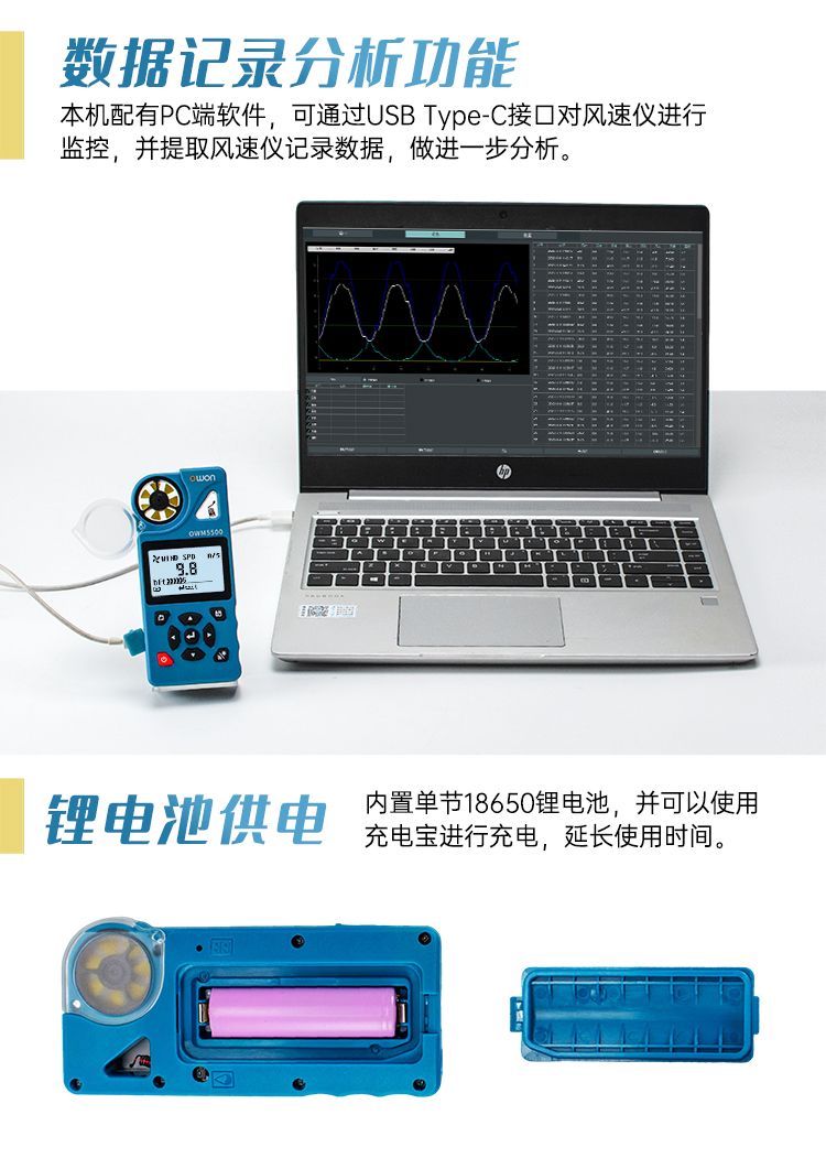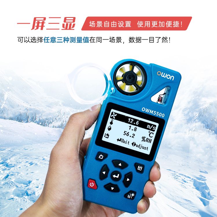 +可测量包括风速、风量、温度、湿度、露点温度、湿球温度、风寒温度等7种测量值,支持浦福风力等级、/span>