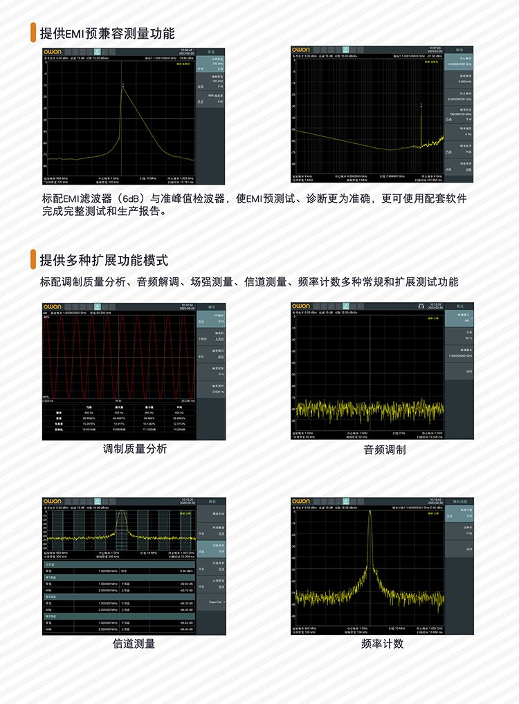 - 瀑布图、调制质量分析、音频解调等常规测试和扩展功胼/span>