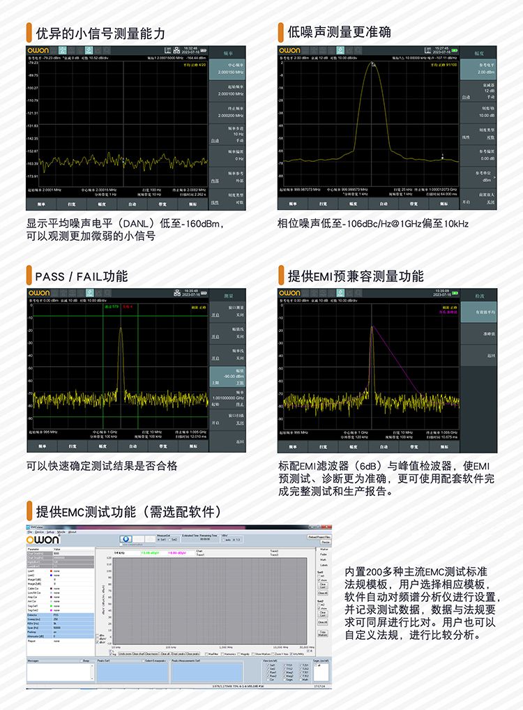 + 频率范围 9 kHz -7.5 GHz + 显示平均噪声电平(DANL)低至-160dBm + 相位噪声-106dBc/Hz @1GHz 偏移10kHz + 全幅度精?lt;0.7dB + 最小分辨率带宽(RBW)1Hz + 提供EMI预兼容测量功胼/span> + 标配GPS功能提供,可以记录经纬信息和测试信息 + 锂电池供电,使用时间4-6小时 + 可选配1.6GHz/3.6GHz/ 7.5GHz 跟踪溏/span> + 8 英寸IPS多点触控显示屏,可视角度好,内置光传感器 + 轻薄设计,重量仅2.3公斤