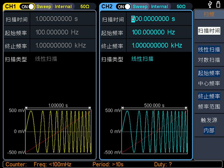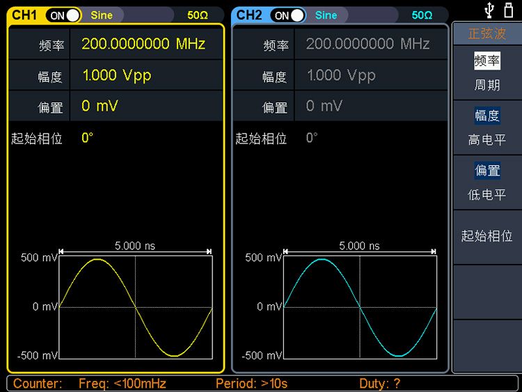 + 内置7位高精度频率计,频率范围100mHz 200MHz
