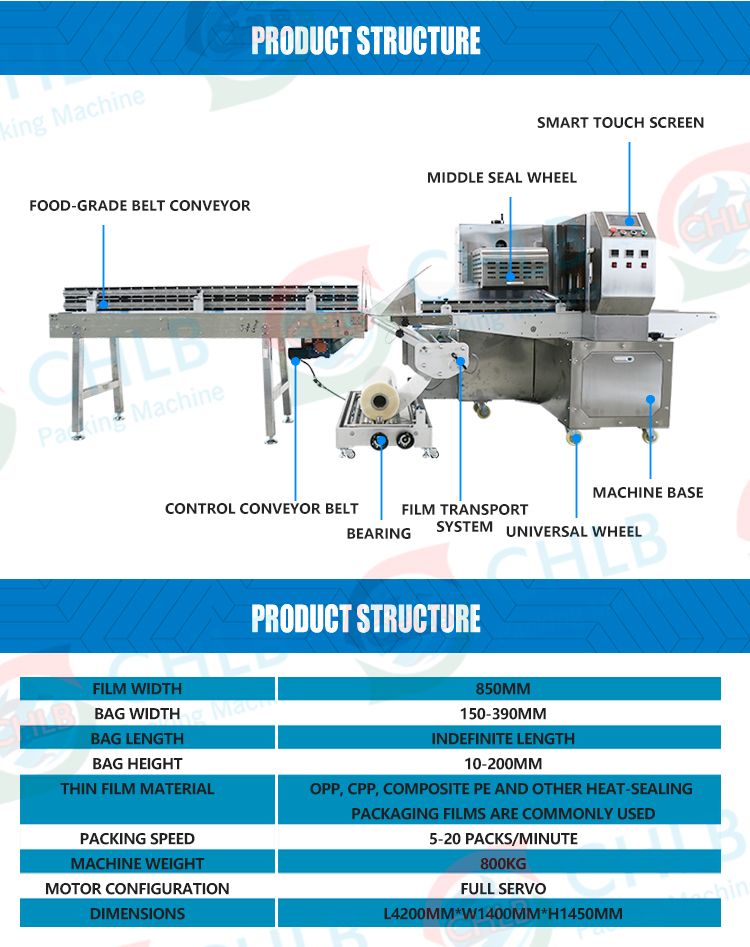 2. The upper and lower cutters are used for packaging with high product height to ensure compact packaging