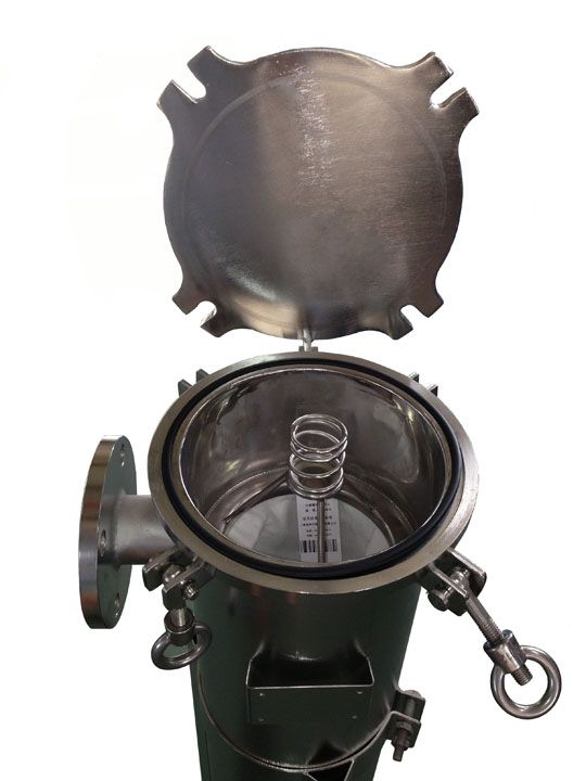 按进口方向分为:侧入式袋式过滤器、顶入式袋式过滤器、/span> 吊环平板袋式过滤器属吊环平板侧入式袋式过滤器 袋式过滤器是一种新型的过滤系统,过滤机内部由金属网篮支撑滤袋,液体由入口流进,经滤袋过滤后从出口流出,杂质拦截在滤袋中,更换滤袋后可继续使用、/span> 袋式过滤器处理量大、体积小、容污量大、/span> 基于袋式过滤系统的工作原理和结构,更换滤袋时方便快捷,而且过滤器易清洗,省时省工、/span> 滤袋侧漏机率小,有力的保证了过滤品质、/span> 袋式过滤可承载更大的工作压力,压损小,运行费用低,节能效果明显、/span> 滤袋过滤精度不断提高,目前已达到0.5um、/span> 袋式过滤应用范围广,使用灵活,安装方式多样、/span> 单袋式过滤器技术参数: