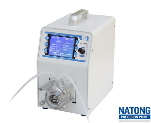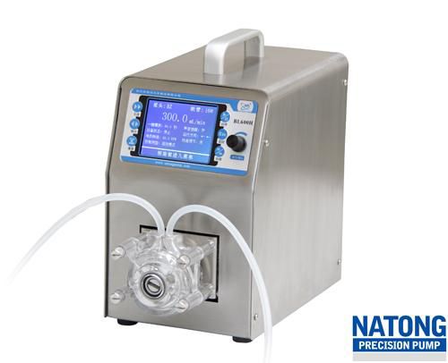 纳通蠕动泵采用脉冲调速,用角度来控制灌装量,保证每次灌装停机后滚轮位置不变,避免了因滚轮每次停的位置不同而产生的误差。使得重复精度有很大的提升。可以控制在0.3%以内。(仅适用?0滚轮?滚轮泵头(br/> 配合泵头的压力调节功能,可以任意设置灌装数值。方便了用户的使用、br/>一、功能特炸br/>1?.5英寸320*240高亮液晶显示,所有运行参数同屏显示,操作简单易懂、br/> 2、采用“双CPU”控制,驱控分离,运算速度快,工作稳定,传输精度高,精准一键灌装功能,重复精度可达±0.3%、br/> 3、具有流量自动校正,声音提醒,无极调速,启停、换向等功能,设有全速按钮,具有快速填充、排空功能。便直连多种传感器,电容传感器,液位传感器,光电传感器等;产品硬件预留多种电路接口,可最大程度上满足客户的特殊定制需求;可佩无线遥控器、br/> 4、丰富的外部控制功能可供选择。例如,DC12V输出,方便直连多种传感器,电容传感器,液位传感器,光电传感器;产品硬件预留多种电路接口,可最大程度上满足顾客的特殊定制需求;可配无线遥控器、br/> 5、采用步进电机控制转速,不受负载变化的影响,大转矩、低功耗,适应性强、br/> 6、驱动电路性能优良,散热性好,工作噪音小,运行平稳,具有掉电记忆功能。内部电路均做三防处理,超强的抗干扰特性,宽电压设计,适用于复杂的供电环境、br/> 7、BL-H系列产品设有把手,方便携带;有不锈钢外壳和铁板金喷塑外壳可供选择;可安装多种泵头、br/>二、技术参?/strong>