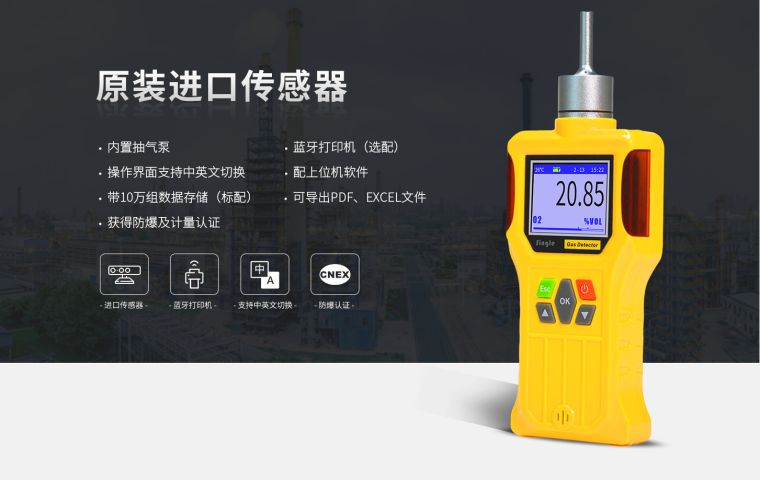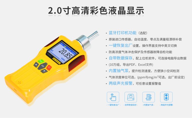 原装进口传感器,两级声光报警,中英文切换、/p>