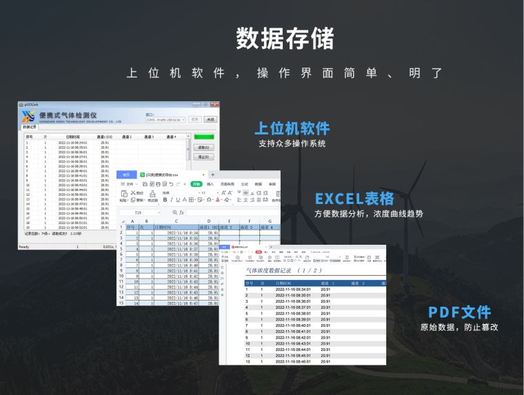 带数据存储功能,可现场查看,导出EXCEL表格及PDF文档、/p>