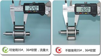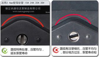 左图为纳通YZ-Ⅱ系列蠕动泵泵头滚轮,可使用35#?6#两种更粗的软管,可达到更大的流量,右图为普通泵头滚轮,不能使用这两款软管,可达到的流量小,容易撵管、/span> |