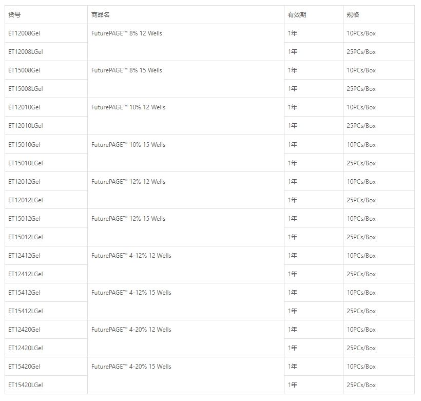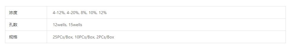 产品介绍9/span> 1?/span>本产品为聚丙烯酰胺电泳凝胶,用于蛋白质分离,单片胶为 12 孔或 15孔,12 孔胶每孔最大上样量 50 μL,推荐上样量 25 μL 以下?5 孔胶每孔最大上样量 30 μL,推荐上样量 15 μL 以下:br/> 2 采用全自动凝胶灌注技术,产品的重复性好,质量稳定。独特的凝胶缓冲配方使蛋白电泳条带更为清晰锐利,更加均匀,分辨率更高:br/> 3、配套缓冲液为中性缓冲液,可以提高凝胶稳定性和避免蛋白在电泳过程中的再修饰、/span>