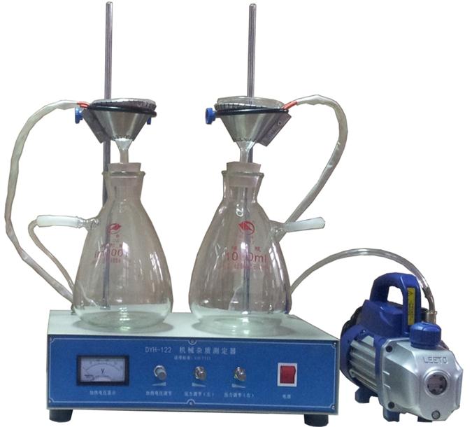 我公司生产的机械杂质测定仪为系列产品:DYH?22A 手动机械杂质测定仪,DYH?22B 自动机械杂质测定仪、/span> 机械杂质测定?/strong>DYH?22 执行标准9/strong>GB/T511石油和石油产品及添加剂机械杂质测定法、/span> 适用范围9/strong>适用于测定石油产品中的各类轻、重质油、润滑油及添加剂的机械杂质含量、/span> 性能特点9/strong> ★由控温水浴、控制箱、控温漏斗及抽滤装置组成、/span> ★电加热漏斗温度由固态调压器调节输入电压,从而控制加热功率大小,满足试验时的温度要求、/span> ★具有体积小、重量轻、安装方便、使用灵活等特点。可靠耐用、/span> 技术参数: 1、电源要求:AC220V±10%?0Hz 2、水浴加热功率:1000W 3、漏斗加热功率:80W×3 4、 约:1300W 5、水浴控温范围:室温?0ℂ/span> 6、水浴控温精度:±0.1ℂ/span> 7、漏斗控温范围:室温?0ℂ/span> 8、漏斗控温精度:±0.1ℂ/span>