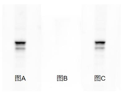 图A为使用本产品前目的蛋白条带的显影;图B为使用本产品后的显影图;图C为再次孵育抗体后的显影图、/p> |