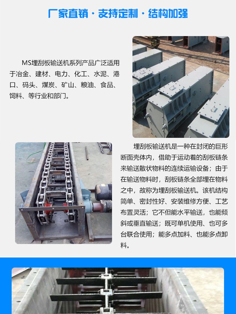 水平型埋刮板输送机MS25型,当物料加入固定的机槽内时,由于物料的重力及其与机槽间的摩擦力作用,堆积在机槽下部的物料不随螺旋体旋转,而只在旋转的螺旋叶片推动下向前移动,如同不旋转的螺母沿着转动的螺杆作平移运动一样,达到输送物料的目的。该机便于多点装料与卸料,输送过程中可同时完成混合、搅拌或冷却功能。对超载敏感,易堵塞;对物料有破碎损耗,水平螺旋输送机的结构简单,便于安装和维修以及故障处理、/span>