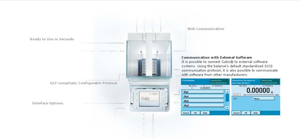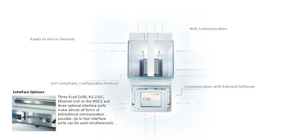 所有Cubis?天平均具有三个标准配备的接口端口(USB,RS232C,以太网[不是MSE])和三个可选端?蓝牙,PS/2,RS232C),这样便可建立几乎所有类型的双向通信。而这,就是我们现在所说的最大连接性!