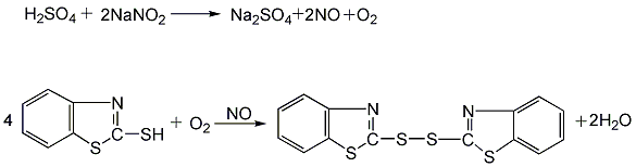 分子式:C14H8N2S4 分子量:332.49 MDL号:MFCD00022874 EINECS号:204-424-9 RTECS号:DL4550000 物理性质9/strong> 1、性状?nbsp;浅黄色针状结晵/p> 2、相对密?20/4??45-1.50 3、闪???71 4、熔???13-220 5、水溶?g/100mL,20??lt;0.01 化学性质9/strong> 从苯中析出浅黄色针状结晶。不溶于水、醋酸乙酯、汽油及碱液?5℃下在下列物质的溶解?g/100ml)为:乙醇<0.2,丙?lt;0.5,苯<0.5,四氯化?lt;0.2,乙?lt;0.2。略有苦味,无臭。室温下微溶于苯、甲苯、四氯化碳、二氯甲烷、丙酮、乙醇、乙醚等,毒性很小。遇明火可燃烧。呈粉尘时有爆炸危险、br /> 储存方法9/strong> 应远离高热源。粒状或粉状产品储存稳定期两年以上,按有毒物品规定贮存、br />注意防潮、/p> 制备路径9/strong> ?-巯基苯并噻唑(参见促进剂M)和亚硝酸钠加入气相鼓泡塔内,滴加10%的硫酸溶液,并鼓入空气。控制反应温度在60℃左右。硫酸滴加完后,继续鼓入空气,温度仍保持60℃,直至反应完全、br />生成的促进剂DM不溶于水,在料液中呈固体微粒。经过滤、水洗、离心脱水、干燥、粉碎、筛析、包装,即得成品、br />