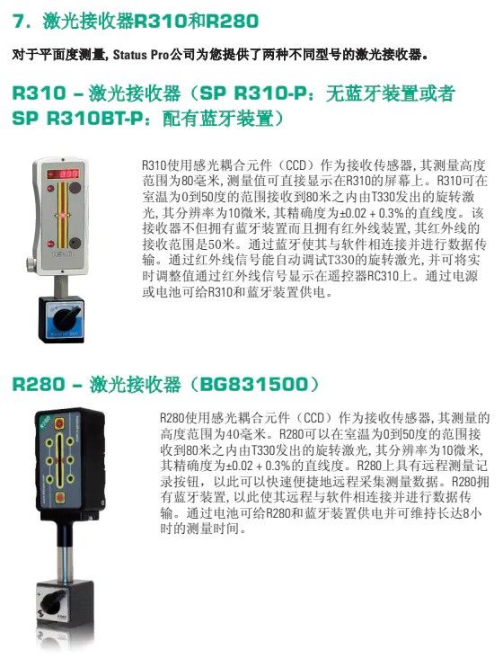 对于平面度测?Status Pro公司为您提供了两种不同型号的激光接收器9/span>