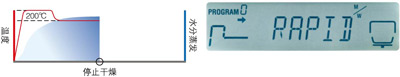 间隔干燥方式 快速干燥方弎/span> 测定初期,先使用高的温度进行加热,然后用标定的温度再加热,缩短加热时间、/span> |