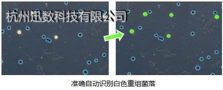 特定菌识?/strong> 特定菌识别功能:只须用鼠标点中一个单菌落,即可瞬间获取同类型菌落的数量、每个菌落的位置、形态特征、/p> 例图为基因工程重组子筛?蓝白?