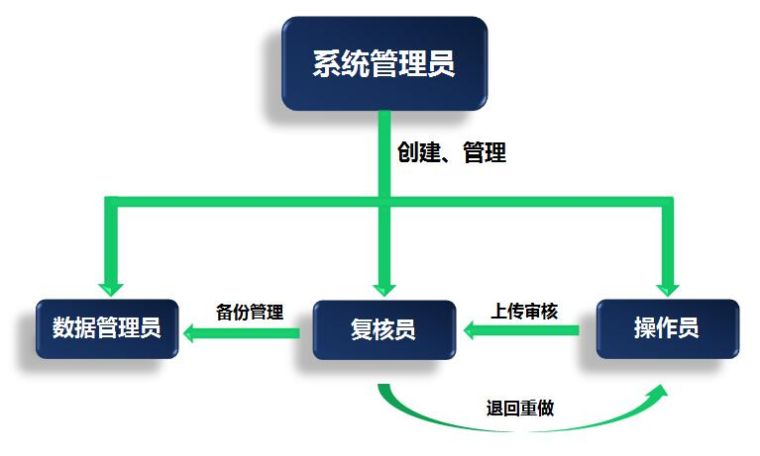 保证系统安全、数据安全的架构设计“系统管理员、数据管理员、操作员、复核员”四重系统架构,分设职能与权限,确保数据信息的安全、完整和真实、/p> 系统管理员:负责创建、管理所 有操作员与审核员的账户和登入密码、/p>