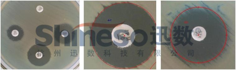 抑菌活性分枏/strong> 打孔法形成的抑菌圈多呈理想圆形。迅数的自动检测算?基于抑菌圈轮廓的精确边缘检?可快速实现抑菌圈轮廓的提取和直径的测量、/p>