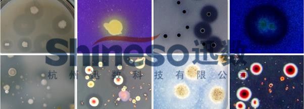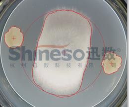研究:菌丝生长速率、霉菌生长量、菌丝生长抑制率、室内毒力测定,由于霉菌蔓延、疏松、边缘发散不规则,测量的人为误差大,效率低、br/> Supcre G9的一键式工具能方便、准确地用于平皿对峙法,分析拮抗菌对病原菌菌丝的抑制能力、/p> 自动轮廓提取,菌落特征描?/strong> 菌落形态数字化描述体系,不仅规范细菌、酵母、放线菌、霉菌的特征描述,还把菌落精确测量数据直接导入数据库,如根据取值点的三维颜色数据,自动生成菌落色泽描述、/p>