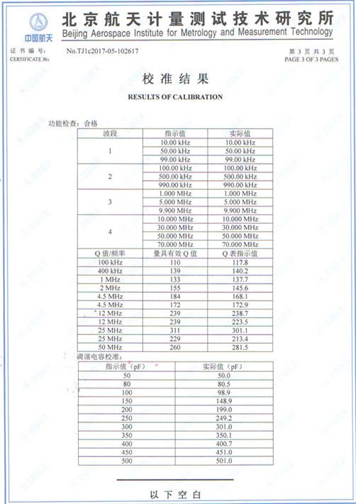 一、概述: ZJD-C型介电常数及介质损耗测试仪作为最新一代的通用、多用途、多量程的阻抗测试仪器,测试频率上限达到目前国内最高的160MHz.ZJD-C介电常数测试仪采用了多项××技术、/span> 双扫描技 - 测试频率和调谐电容的双扫描、自动调谐搜索功能、/span> 双测试要素输 - 测试频率及调谐电容值皆可通过数字按键输入、/span> 双数码化调谐 - 数码化频率调谐,数码化电容调谐、/span> 自动化测量技 -对测试件实施 Q 值、谐振点频率和电容的自动测量、/span> 全参数液晶显 数字显示主调电容、电感 Q 值、信号源频率、谐振指针、/span> DDS 数字直接合成的信号源 -确保信源的高葆真,频率的高精确、幅度的高稳定、/span> 计算机自动修正技术和测试回路最优化 —使测试回路 残余电感减至最低,彻底根除 Q 读数值在不同频率时要加以修正的困惑、/span> 二、主要技术特性: Q 值测量范図 2 1023,量程分档?0?00?00?000,自动换档或手动换档 固有误差: 5 % ± 满度值的 2 %( 200kHz 10MHz ),?% ± 满度值的2%(10MHz?60MHz) 工作误差: 7 % ± 满度值的 2 %( 200kHz 10MHz ),?% ± 满度值的2%(10MHz?60MHz) 电感测量范围: 4.5nH 140mH 电容直接测量范围: 1 200pF 主电容调节范図 18 220pF 主电容调节准确度: 100pF 以下 ± 1pF;100pF 以上 ± 1 % 信号源频率覆盖范図 100kHz 160MHz 频率分段( 虚拟 ): 100 999.999kHz, 1 9.99999MHz,10 99.9999MHz,100 160MHz 频率指示误差: 3 × 10 -5 ± 1 个字 三、夹具工作特?/strong> 1.平板电容器: 极片尺寸 Φ50mm/Φ38mm可逈/span> 极片间距可调范围 ?5mm 2. 夹具插头间距?5mm±0.01mm 3. 夹具损耗正切值:?×10? (1MHz) 4.测微杆分辨率: 0.001mm 四、配置: 主机 一?/span> 电感 九支 夹具 一奖/span> 随机文件一奖/span> |