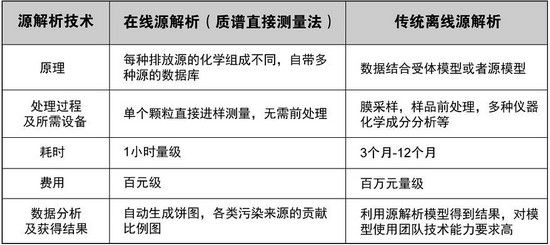 在线源解?质谱直接测量?的优劾/strong> —基于国际××的单颗粒气溶胶飞行时间质谱技?/span> —直接进样、无需前处琅/span> —高时间分辨率,最?小时可得到源解析结果 —智能高效的在线源解析功能,实现快速精准分枏/span> —具备全天候监测能力,在恶劣气象条件下发现污染排放现象 —具备捕捉间歇式瞬间污染排放现象的能劚/span> 与传统源解析综合对比