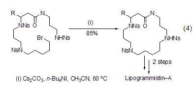 碳酸铯在天然产物合成方面也具有重要用途,如在合成Lipogrammistin-A化合物关键一步闭环反应中,采用碳酸铯作为无机碱能够高产率地获得闭环产 (?)、/p>