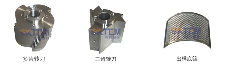 样品通过防反溅的进样料斗进入研磨室内,通过旋转的转刀与固定的切割棱之间的剪切切割作用,对样品进行切割粉碎。样品的出样尺寸取决于底筛孔径,多种规格的底筛满足各种样品的需求、br/>