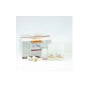 检测原理: Prostatic Acid Phosphatase/ACPP ELISA检测试剂盒采用双抗体夹心酶联免疫吸附检测方法。向预包被了抗体的微孔板中,加入标准品和待测样本,温育后,加入生物素标记抗体和过氧化物酶标记的链霉亲和素。经过温育和洗涤结合形成的免疫复合物,去除未结合的酶,然后加入显色底物TMB。TMB在过氧化物酶的催化下转化成蓝色,并在酸的作用下转化成最终的黄色。颜色的深浅和样品中的待测因子浓度呈正相关。最后,?50 nm处测定反应孔样品吸光度(OD)值,通过绘制标准曲线计算出样本待测因子的浓度、/p> 试剂盒组刅/p> ELISA酶标板、标准品、生物素化抗体、浓缩HRP酶结合物、酶结合物稀释液、生物素化抗体稀释液、标准品&样品稀释液、浓缩洗涤液、底物溶?TMB)、反应终止液、封板覆膛/p> 需自备物品 1.酶标?450nm检测波长滤光片?70nm?30nm校正波长滤光? :/p> 2.洗板机(可调注液量,保证每孔350μl洗液而不溢出); 3.高精度单道加液器:/p> 4.高精度多道加液器:/p> 5.37℃恒温箱:/p> 6.低温离心机; 7.纯净水或蒸馏水、/p> 操作步骤 1.从已平衡至室温的密封袋中取出试验所需板条,未用的板条和干燥剂请放回铝箔袋内封存于2-8℃; 2.分别将标本或不同浓度的标准品加入相应孔中(100μl/? 37℃孵箱孵?0分钟:/p> 3.弃掉板内液体,洗?次; 4.加入生物素化抗体工作?100μl/??7℃孵箱孵?0分钟;弃掉板内液体,洗板3次; 5.除空白孔外,加入酶结合物工作?100μl/??7℃孵箱,避光孵育30分钟;弃掉板内液体,洗板5欠/p> 6.加入TMB显色工作液(包括空白孔)100μl/孔,37℃孵箱,避光孵育,当标准曲线高浓度的颜色较深,有明显的颜色梯度的时候,即可终止。试验显色反应请勿超?0分钟:/p> 7.加入终止液(包括空白孔)100μl/孔,混匀后即刻测量OD?50nm)?10分钟?、/p> 8.计算标本待测因子含量、/p> 注意事项 1.试剂盒使用前请保存在2-8℃。除复溶后的标准品,其他成分不可冻结、/p> 2.浓缩生物素化抗体,浓缩酶结合物体积小,运输中颠簸和可能的倒置,会使液体沾到管壁或瓶盖。因此使用前请用手甩几下?000rpm离心1分钟,以使附着管壁或瓶盖的液体沉积到管底、/p> 3.浓洗涤液可能会有结晶析出,稀释时可在水浴中加温助溶,使结晶完全溶解后再配制洗涤液、/p> 4.实验过程中,冻干标准品为一次性使用,不得分装。因其浓度较低,溶解两小时候后,会迅速失活、/p> 5.操作严格按照说明书进行,本试剂不同批号组分不得混用、/p> 6.配制试剂时,要用旋涡混合仪混匀。加入孔内的试剂,充分混匀对测试结果尤为重要,最好使用微量振荡器(使用最低频率),如无微量振荡器,可在反应前手工轻轻晃动酶标?分钟,例如做圆周动作,使加入孔中的反应液混匀、/p> 7.实验用酶标仪应严格按使用说明书规范操作,并在使用前充分预热、/p> 8.酶免实验中标准品和样本检测时建议作复孔、/p> 9.将不用的微孔板放进原铝箔袋中,置2-8℃保存、/p> 10.显色液对光敏感,因此要避免直接暴露在光线下、/p> 11.超过使用有效日期的试剂盒不能应用于实验中、/p> 12.试验结果判定必须以酶标仪读数为准,使用双波长检测时,波长应该设置为450nm?30nm. 13.所有样品,洗涤液和各种废弃物都应按生物废弃物处理。终止液?M硫酸,使用时必须注意安全、/p> 14.各步骤加样均应使用加样器,并经常校准其准确性,以避免试验误差。一次加样时间控制在5分钟内,如标本数量多,推荐使用排枪加样、/p> 15.每次试验测定的同时做标准曲线,做复孔。如标本中待测物质含量过高(样本OD值大于标准品孔最高浓度的OD值),请先用样品稀释液稀释一定倍数后再测定,计算时请最后乘以总稀释倍数、/p> 16.不能检测含NaN3的样品,因NaN3抑制辣根过氧化物酶的(HRP)活性、/p> 17.以洗板机洗板时,每孔注液量不应少?50μl, 注意检查加样头是否堵塞。手工洗板时 用带纸屑的吸水材料应慎重 防止外源性过氧化物酶类似物或氧化还原物与显色剂发生反应、/p> 18.用终止液终止反应后,请于10分钟内读取OD值、/p> 19.进行复孔实验时,结果计算一定要求平均值、/p> 20.标本溶血可能会有假阳性结果,因此溶血标本不宜进行此项检测、/p> 21.试验时,应该将加过样品的板条放于密闭盒内,并保持湿度?0%左右:/p> 22.为保证恒温箱内的温度?7℃,恒温箱的温度要经常校准。以确保实验温度保持恒定?nbsp; 精密?/p> 批间?CV%<10%;批内差:CV%<8% 储存 -20?短期4ℂ/p> 有效朞/p> 12个月 |