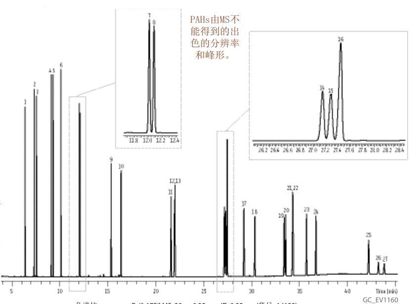 Rxi?-17Sil MS 色谱 (熔融石英) (中等极性Crossbond?技术键合固定相) ? 温度上限高达340/360°C、/span> ? 对诸如多环芳?PAHs)的活泼性化合物表现出优越的惰性和选择性、/span> ? 固定相等同于USP G3、/span> ? 超低的柱流失-适用于高灵敏度检测器,如MS、/span> ID df 温度? 15 30 60籲/span> 0.25 mm 0.25 μm 40 to 340/360 °C 14120 14123 14126 0.32 mm 0.25 μm 40 to 340/360 °C 14121 14124 ID df 温度 10 20籲/span> 0.15 mm 0.15 μm 40 to 340/360 °C 43820 43821 0.18 mm 0.18 μm 40 to 340/360 °C 14102 0.36 μm 40 to 340/360 °C 14111 *最高温度列出的为长度较短的色谱柱,较长的色谱柱可能有不同的最高温度、br/> 类似固定盷br/>DB-17ms, VF-17ms, CP-Sil 24 CB, ZB-50 Rxi?-17Sil MS分析多环芳烃 色谱 Rxi?-17Sil MS, 30 m, 0.25 mm ID, 0.25 μm (货号 14123) 样品 为方?100补充的PAH混合 (货号 31857) EPA方法 8310 PAH混合?货号 31841) 苯并?自制? 稀释剂: 二氯甲烷 浓度: 10 ppm 进样 进样体积: 0.5 μL 不分?维持1.75 min) 衬管: Auto SYS XL PSS分流/不分 w/wool (货号 21718) 进样口温? 320 °C 吹扫流逞 75 mL/min 柱温箰/span> 柱温 65 °C (维持0.5 min)?5 °C/min升至 220 °C ? °C/min 升至 330 °C(维持15 min) 载气 He, 恒流 流逞 2.0 mL/min 检测器 FID @ 320 °C 仪器 PE Clarus 600 GC 鸣谢 PerkinElmer提供仪器 ?/span> 1.萗/span> 2.2-甲基萗/span> 3.1-甲基萗/span> 4.苊烯 5.苉/span> 6.芳/span> 7.菱/span> 8.蒼/span> 9.荧蒽 10.芗/span> 11.苯并[a]蒼/span> 12.屇/span> 13.苯并菱/span> 14.苯并[b]荧蒽 15.苯并[k]荧蒽 16.苯并(j)荧蒼/span> 17.苯并[a]芗/span> 18.3-甲基胆蒽 19.二苯并(a,h)杂蒼/span> 20.二苯并[a,j]杂蒽 21.茚并[1,2,3-cd〕芘 22.二苯并[a,h]蒼/span> 23.苯并[ghi]芗/span> 24.7H-二苯并[c,g]咔唑 25.二苯并[a,e]芗/span> 26.二苯并(a,I)芘 27.二苯并(a,h)芘 |