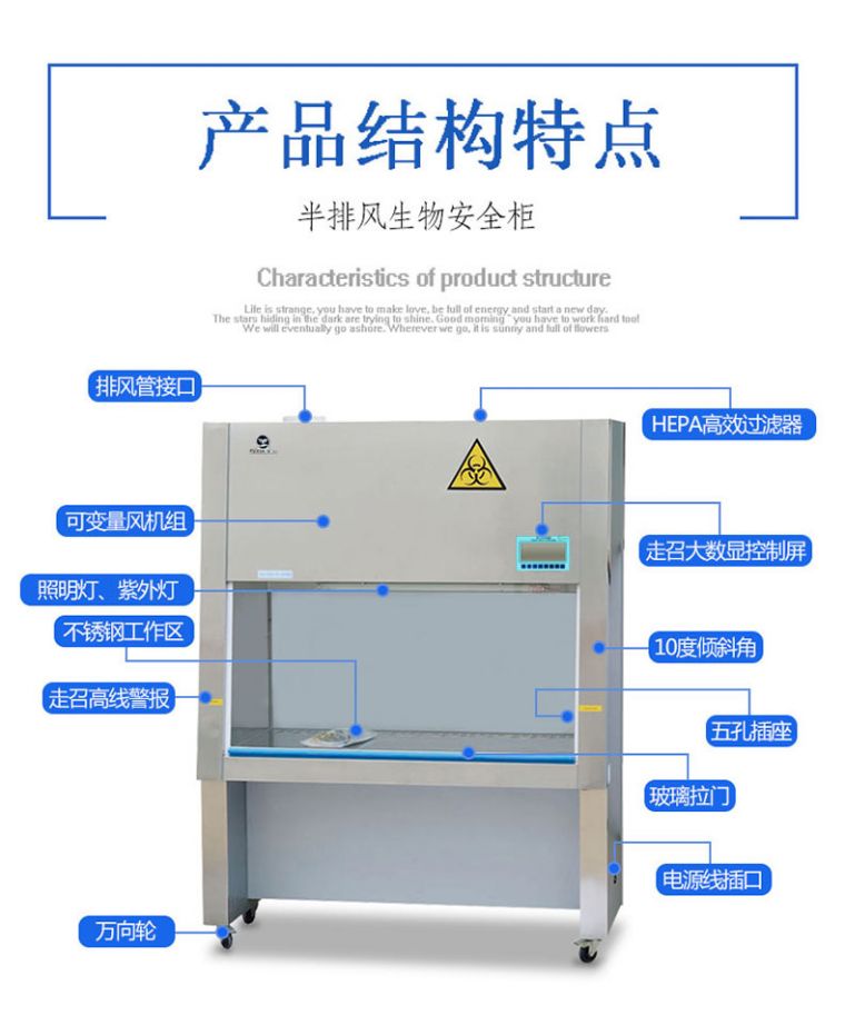 产品名称:二级安全柜 型号:BSC-1000IIA2 洁净安全柜是当今微实验室之必要品,特别是那些对操作者需要采取保护措施的场合。如医疗、制药、科研等进行细菌培养时提供既无菌无尘又工作安全的环境、/p> 特点9/strong> 1 气幕式隔离设计,防止内外交叉污染,气流70%外排30%内循环,负压垂层流、/p> 2 上下移动玻璃门,可任意定位,易于操作,并能完全关闭以便杀菌,定位高度限位报警提示、/p> 3 工作区电源输出插?配备装用防水插座和排污接口为操作者提供方便、/p> 4 排风处设有过滤器,控制排放污染、/p> 5 工作环境采用304不锈钢,光滑、无缝、无死角,可轻松消毒,可防止腐蚀剂和消毒剂的侵蚀、/p> 6 采用LED液晶面板控制、/p> 7.10°倾斜角,符合人体设计理念、/p> 技术参?/strong>