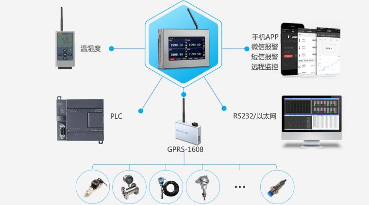 采用GPRS传输数据的采集模?无需布线。专业采集电压、电流、温度、湿度、压力、振动、频率、流量、液位等信息、br/>免费提供数据平台连接功能,远程WEB查看、管理数据、/p> 局域网监控系统应用