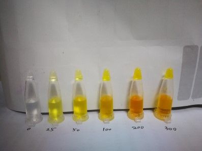 食品中过氧化氢含量速测试剂盒我司生产食品中过氧化氢含量速测试剂盒,食品中过氧化氢含量速测试剂盒适用于海产干品、冻品、水发食品、各种肉制品、面制品、干果制品等人为掺入过氧化氢食品的现场快速检测、/p> 1、检测方法: 1.1:取少量待测样品于样品杯?约l??,剪碎后加入等量的纯净水,浸泡10分钟:br /> 1.2:用吸管吸取此浸泡液0.5 mL (?0?加到比色管的孔中,再?滴检测液混匀;观察颜色变化、br /> 2、判断结枛br /> 2.1?分钟后溶液颜色没有变化,表明样品不含双氧水; 2.2:若溶液颜色呈淡黄色至橘色,则表示样品中有添加双氧水。颜色越深表示过氧化氢(双氧水)含量越高、br />