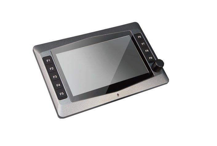 SPD-070-Fx系列显示屏是长沙硕博电子开发的电容式触摸显示屏,有9个按键和1个旋钮(带按键),屏幕分辨率1024*600,对比度700(典型值),亮?00cd/m2,支持Codesys3.5编程。具?路CAN总线?路RS232串口通信?路USB2.0 OTG?路以太网(专用于程序调试与下载)?路AHD/TVI/CVI/CVBS视频?0路IO资源,集成语音报警功能,并支持蓝牙通讯,可通过手机APP进行无线升级、/p>