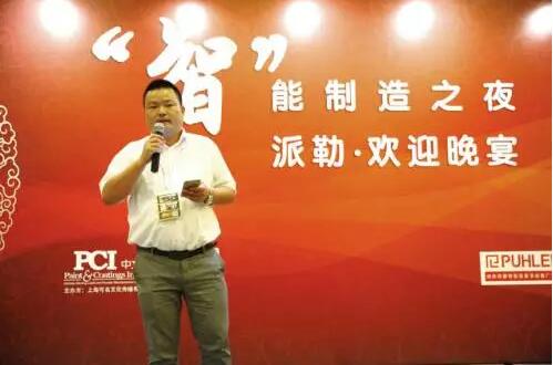 广东派勒智能纳米科技股份有限公司总经理、科技项目总负责人雷立猛先甞br/> 广东派勒智能纳米科技股份有限公司总经理、科技项目总负责人雷立猛先生的“智能制造如何定格未来纳米材料研磨技术”讲述了派勒集团的砂磨机?000年到2017年的飞跃式发展历程。派勒砂磨机研磨工艺,依据物料的性能和要求,有几种途径:有单机单次通过研磨(如金红石钛白粉等);单机多次循环研磨(如汽车、纳米色浆、涂料);多机串联单次研磨(如纸张涂料等);多机串联循环研磨(如汽车漆、工业漆、水性涂料等)。针对水性涂料的研磨过程,雷总介绍到:水性涂料中有一定比例的固相成分,如颜料及填料等固体颗粒需研磨到一定的细度,并均匀地分散于液相中。根据种类及用途的不同,固体颗粒的细度可从数个微米到纳米范围,对于不同细度的研磨过程,选择适合的研磨机类型甚为关键。研磨设备经历了从球磨机,立式砂磨机及卧式砂磨机的过程。随着固体颗粒细度从微米级到纳米级发展,卧式砂磨机也从盘式砂磨机发展的销棒式砂磨机。随着固体颗粒细度从微米级到纳米级发展,卧式砂磨机也从盘式砂磨机发展的销棒式砂磨机、br/> 派勒“智”能制造欢迎晚害br/> 暨“华源”最美工程师颁奖典礼