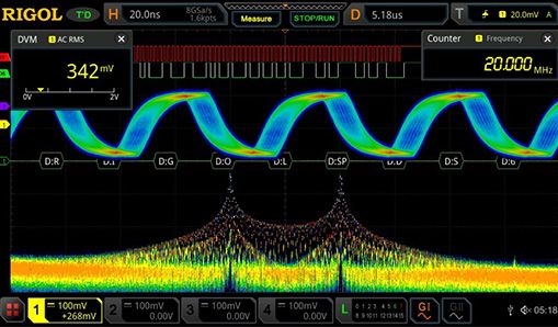 - RIGOL此次推出的MSO5000系列数字示波器将7台独立的仪器合二为一,包?台数字示波器??6通道逻辑分析仪?台频谱分析仪?台任意波形发生器?台数字电压表?台高精度频率计和累加器,和一个协议分析器、/li>