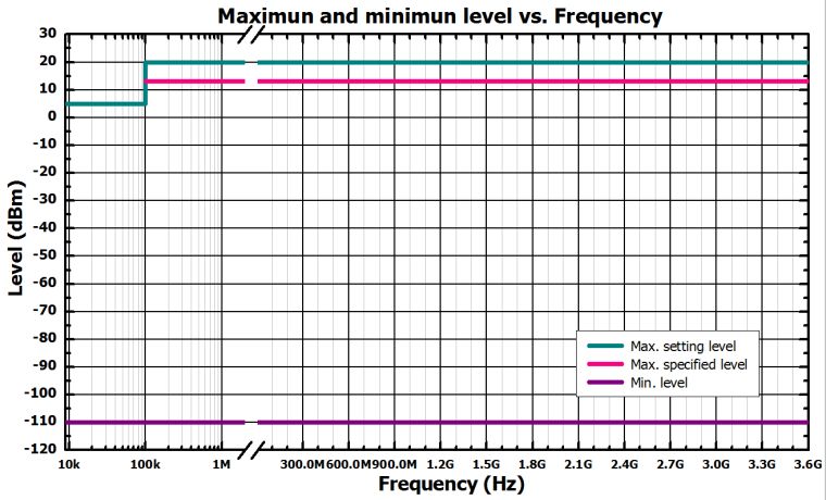 最高频率范围:9kHz?.6GHz, 幅度指标范围?110dBm?13dBm, SSB相噪(典型值)?lt;-112dBc/Hz@1GHz,20KHz偏移, 调制类型:AM/FM/?M/Pulse/IQ, 幅度精度(典型值)?lt;0.5dB