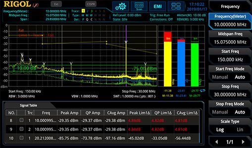 通过内置EMI测试软件完成传导/辐射的预测试 RSA5000内置EMI预测试应用软件,结合符合CISPR标准的滤波器,对产品进行传导及辐射的预测试,从而发现其传导/辐射骚扰源并改善,加速产品上市、/p> |