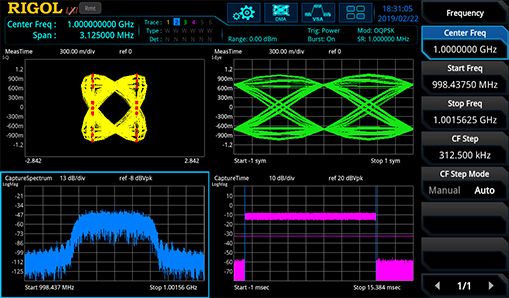通过矢量分析功能发现设计中的问题 矢量信号分析功能VSA支持多种数字调制格式,如QAM,PSK,MSK、ASK、FSK等。通过该功能进行快速地解调,展示其星座图,眼图(基带信号),频谱图,解调数据等多维数据,从而发现设计中存在的问题、/p> |