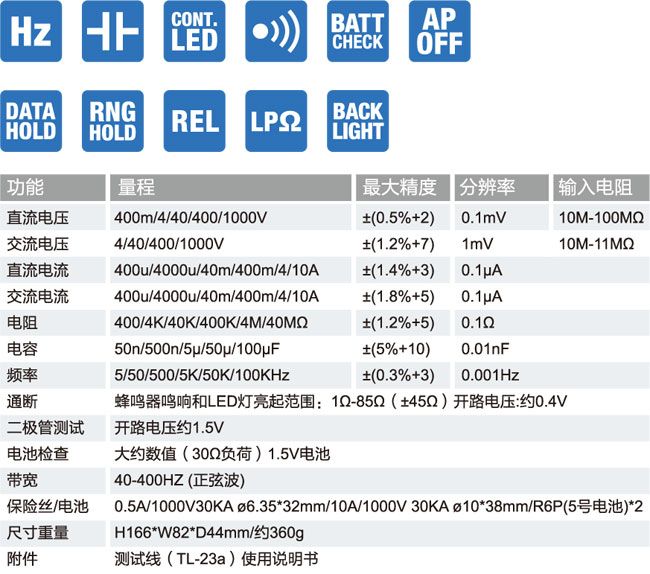 具有电阻、电容、频率、通断和二极管检测功胼/p>