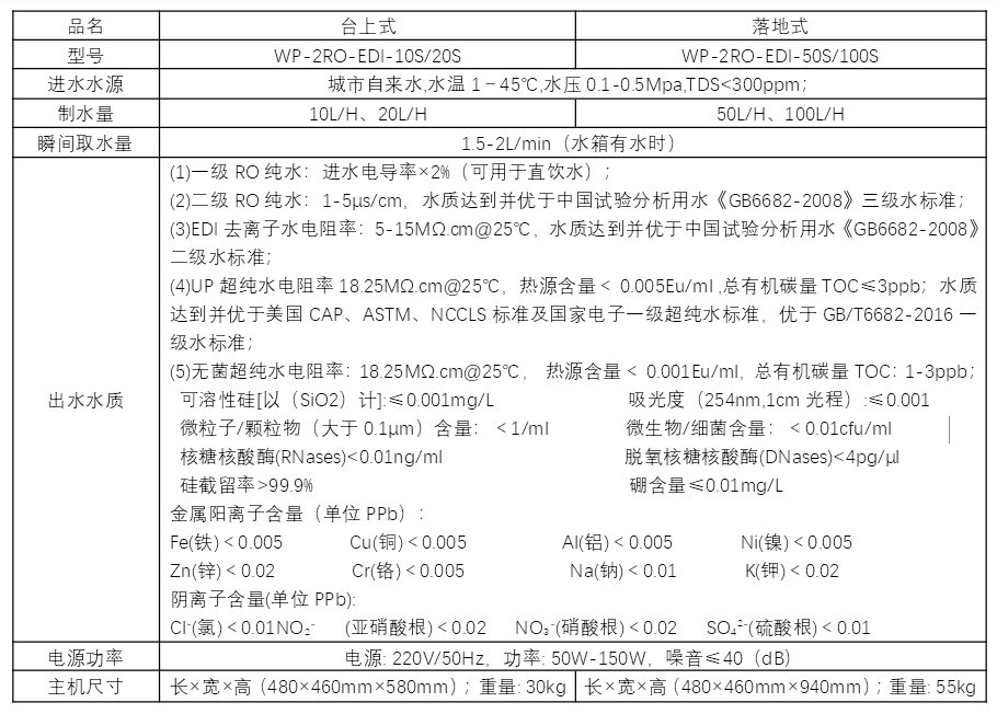 3.设备同时产出5种不同水质:分别为一级RO纯水、二级RO纯水、EDI去离子纯水、UP超纯水、无菌超纯水:/span>