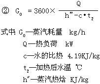 注:表中热水产量?5℃加热至65℃计 五、HX蒸汽消声加热 设计选型 HX蒸汽消声加热器有额定的蒸汽耗量指标,设计时根据实际所需要的蒸汽耗量,选用一台或多台蒸汽加热消声器。实际所需蒸汽耗量可参照以下公式:(①用于间断加热;②用于连续加热?确定如下:
