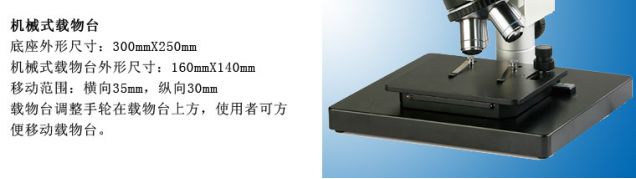 | 机械式载物台外形尺寸?85mmX140mm,移动范围:横向35mm,纵吐30mm | ||