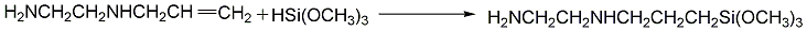 分子式:C8H22O3N2Si 分子量:222.36 MDL号:MFCD00008173 EINECS号:217-164-6 RTECS号:KV7400000 物理性质9/strong> 1、性状:澄清黄色液佒/p> 2、密?g/mL, 20??.04 3、相对蒸汽密?g/mL,空气=1)?1(20? 4、熔??? 5、沸??常压)?59 6、折射率(25ℂfrac type="vertical">)?.45 7、闪???40 8、自燃点或引燃温???36 9、饱和蒸气压(kPa,60?未确定: 10、燃烧热(KJ/mol)?未确宙/p> 11、溶解性:溶于苯、乙酸乙酯,不溶于水、/p> 化学性质9/strong> 常温常压稳定;对空气潮气敏感;与氧化剂、酸性物质发生反库br />无色或微黄色透明液体,闪?40℃。溶于苯、乙酸乙酯,不溶于水、br /> 储存方法9/strong> 密封贮藏,储存在阴凉、干燥、通风的地方;远离氧化剂和酸性物质、/p> 严格避水,避光,避高温、br /> 制备路径9/strong> (1) 三甲氧基硅烷的合成参见?(缩水甘油?丙基三甲氧基硅烷、br />(2)γ-(乙二氨基)丙基三甲氧基硅烷的合成由乙二氨基丙烯和三甲氧基硅烷进行加成反应而制得、br /> 3、三氯氢硅与氯丙烯在氯铂酸催化下进行加成反应,再与乙二胺进行氨基化反应,然后经甲醇醇解得到产物。也可以采用氯丙基三氯硅烷为原料,经甲醇解生成氯丙基三甲氧基硅烷,再经胺解生成产物N-β-氨乙?γ-氨丙基三甲氧基硅烷。其中胺解采用汽?液反应较为合适,胺解反应的优化条件是:原料硅烷与乙二胺的配比??.0;回流时间为3h。反应式如下9/span>