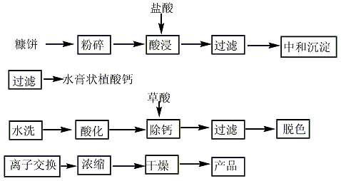 制备路径9/strong> (1)广泛存在于自然界,但几乎不以单独的游离态存在。一般都以钙、镁或钾的复?矶醇六磷酸钙?和蛋白质的络合物形态广泛存在于植物中,戊其常存在于种子、谷物、胚芽、米糠中。该品制法的文献报道很多。以米糠或麦麸为原料,经稀酸浸泡后过滤,用石灰和氢氧化钠中和、沉淀,再用离子交换树脂进行酸化交换、减压浓缩、脱色和过滤,得成品。另外也可通过环已六醇与无机磷酸化学合成,或以植酸钙镁为原料采用脱除金属离子的方法。还可从玉米活性污泥中萃取、br /> (2)?0?0℃下将碎米糠浸泡在Ph值为2的稀盐酸??h,过滤后滤渣再浸?h,并过滤弃渣;合?次滤液,静置l0h,吸取上清液;将适量的Ca(OH)2和Mg(OH)2加入清液中,并用NaOH溶液调Ph值从3.4?.0,搅?5min后静?~3h;弃上清液,过滤,滤渣依次用Ph值为7.5的碱水溶液和蒸馏水洗涤,得植酸钙镁盐,收率为95%?8%、br />将植酸钙镁盐溶解于Ph值为3的盐酸稀溶液中,?5℃下浸泡搅拌l h,维持Ph?.5?.5,使植酸钙镁盐溶解,析出蛋白质。加入上清液?%的硅藻土,搅拌静置抽滤去除蛋白质等沉淀物;滤液依次通过强酸性阳离子交换树脂和强碱性阴离子交换树脂,得植酸稀溶液;在75℃下减压浓缩至含?5%?5%为止、br />将上述植酸溶液投入到多元醇溶?乙二醇、丙二醇或甘油等)中,?30?50℃下加热回流水解3?h,水解液在I00℃?0℃下调节Ph??,然后保温搅拌l h,静置过滤,滤液加热?35℃脱水,之后加入3倍量的无水乙醇,静置即析出结晶产品、/p>