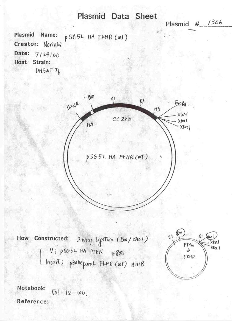 质粒名称9/strong>1306 pSG5L HA FKHR wt