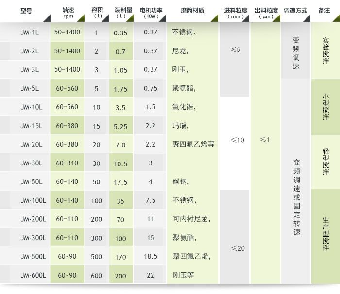 四、搅拌磨参数