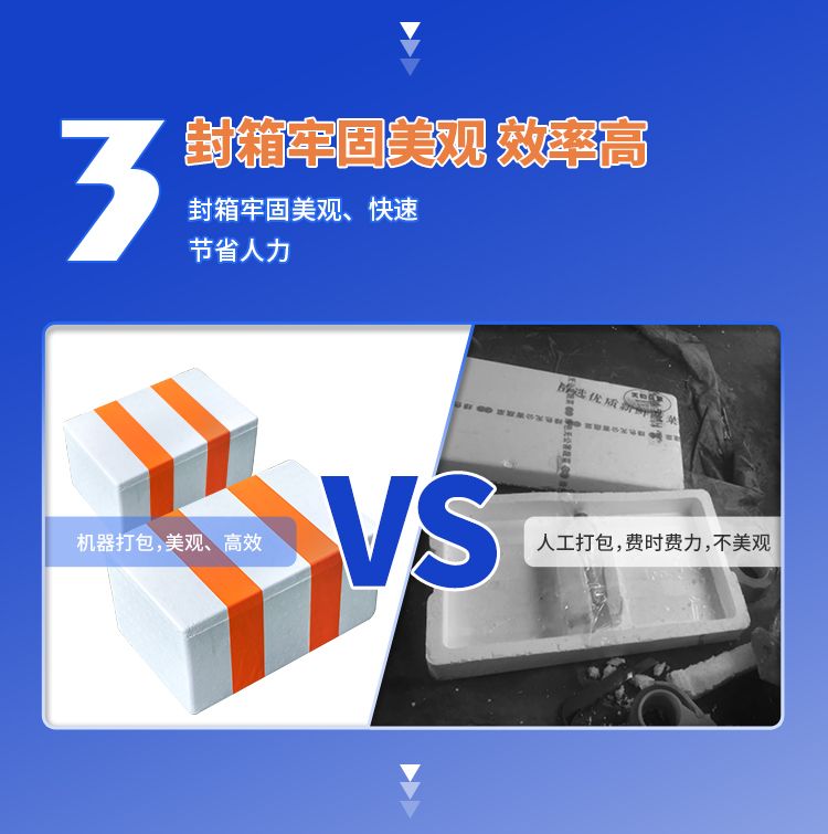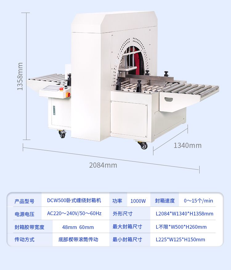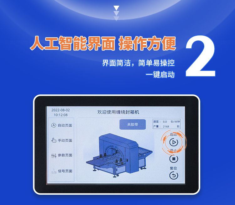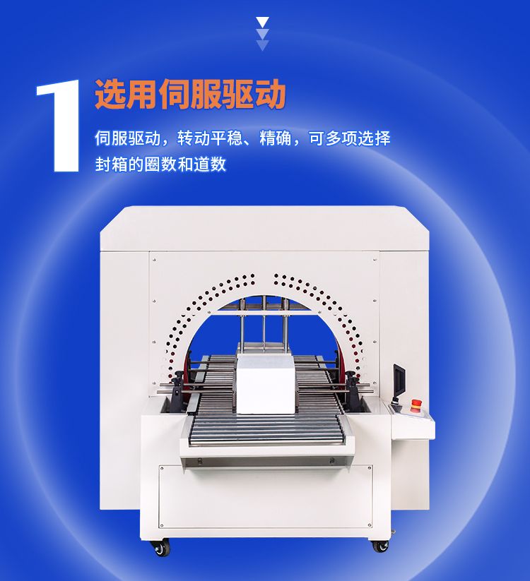 采用楔带传动,传送更平稳,无噪音。缠绕胶带封合平整、牢固、规范、美观、不会撕箱。选用伺服驱动,转动平稳、精确,可多项选择封箱的圈数和道数。可配备油墨打码设备,在纸箱通过时,其侧面可同时打印生产日期、生产批号及必要的文字标注等。本机即可单机使用,也可与生产流水线配套使用、/span>